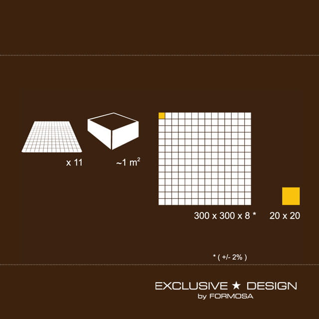 Dimensions [mm]: tile / cube: 300x300x8 / 20x20