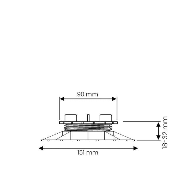 Wsporniki do montażu tarasów wentylowanych. Zakres regulacji 18-32 mm. Szerokość fugi: 3 mm